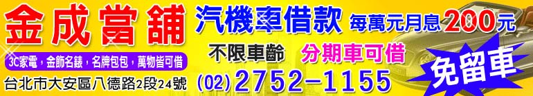 ~台北汽機車借貸,台北汽機車借款,台北汽機車借錢,珠寶,黃金,名錶,3C,名牌包,萬物可借,大額融資,小額信貸,金成汽機車借款當舖,免留車,來就借,歡迎來電(店)洽詢~